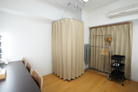 フィッティングスペース完備のメイクルーム(オプション)を別部屋でご用意いたしておりますので、タレント様も安心してお呼び頂けます。