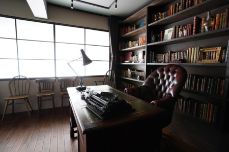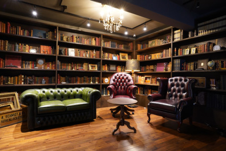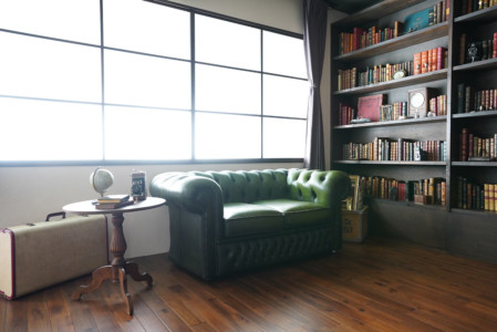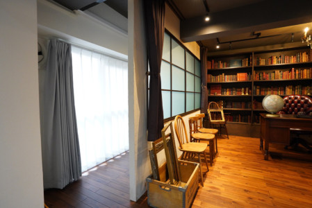 壁2面の大きな本棚や白壁・コンクリート壁・ウッド壁など背景が豊富なため、TV番組やモデル撮影、インタビューなど数多くのシチュエーションにご利用いただけます。